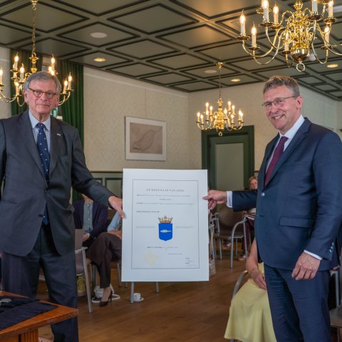 Het wapendiploma werd uitgereikt door jonkheer mr. J.P. de Savornin Lohman, voorzitter van de Hoge Raad van Adel. De Hoge Raad van Adel is het officiële adviesorgaan van de Nederlandse regering op het gebied van gemeentewapens en heraldiek.